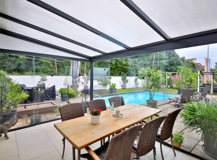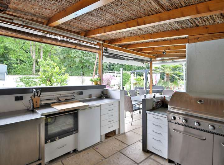 Ein wahres Highlight dieser Immobilie ist der Außenbereich: Zwei gepflegte Außenpools sowie ein luxuriöser Whirlpool laden zu entspannten Stunden im Freien ein. Der weitläufige Garten ist liebevoll angelegt und bietet ausreichend Platz zum Entspannen, Spielen oder Feiern. Ein echtes Highlight ist die exklusive Outdoor-Küche – vollständig ausgestattet mit allem, was das Herz begehrt: Grill, Spüle, Arbeitsflächen, Stauraum und sogar einem Flatscreen-TV. Hier genießen Sie warme Sommerabende in geselliger Runde mit Familie und Freunden in vollen Zügen.