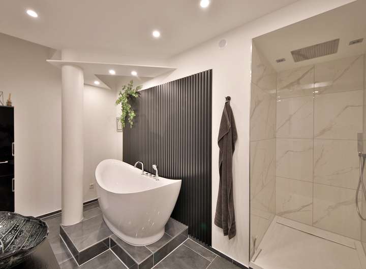 Das Ensemble bietet zahlreiche Zimmer, darunter eine große Anzahl an Schlafzimmern und mehrere modern ausgestattete Badezimmer. Die sieben separaten Wohnungen sind jeweils eigenständige Wohneinheiten mit durchdachten Grundrissen, die sowohl Rückzugsmöglichkeiten als auch offene, kommunikative Wohnbereiche bieten. In den Häusern finden sich sowohl offene Küchenbereiche als auch separate, voll ausgestattete Einbauküchen – perfekt für gemeinsames Kochen oder separate Nutzungseinheiten. Zusätzlich stehen mehrere Gäste-WCs zur Verfügung, die den Alltag besonders komfortabel gestalten.