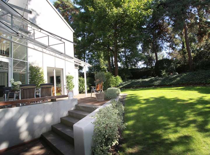 Die Lage dieser Villa vereint die Vorteile einer ruhigen, idyllischen Waldgegend mit der Nähe zum pulsierenden Stadtleben und bildet somit den perfekten Rückzugsort für anspruchsvolle Bewohner, die das Besondere suchen.