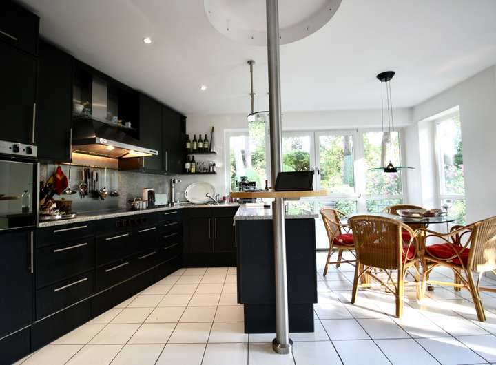 - Einbauküche mit Induktionsherd und schöner Theke, Granitarbeitsplatte