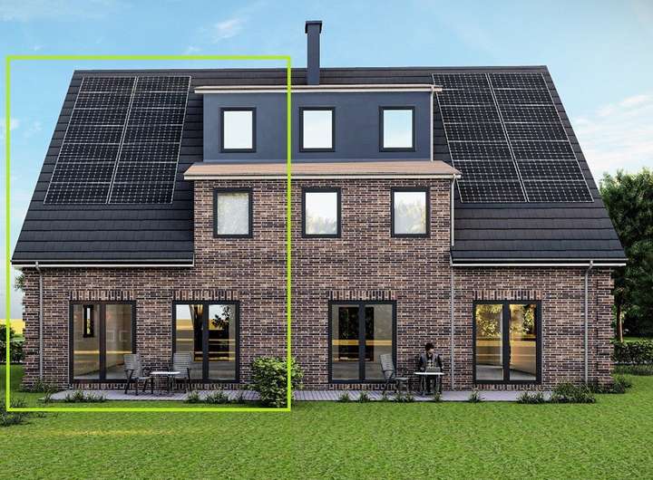 Das Erdgeschoss verfügt über ein Gäste-WC, während im Obergeschoss ein Vollbad mit Wanne und Dusche zur Verfügung steht. In Diele, Küche, Hauswirtschaftsraum und den Bädern werden großformatige Fliesen verlegt. Währenddessen erhält der Wohnbereich einen hochwertigen Parkettboden. Bodentiefe Fensterlemente sorgen für viel Licht, und ein frostsicherer Außenwasserhahn ergänzt die Ausstattung.
