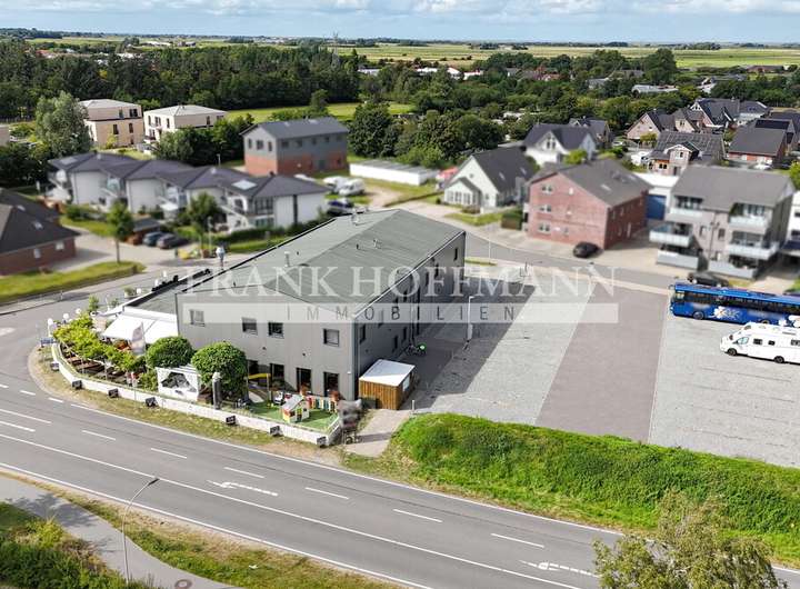 Die Gemeinde mit rund 4.000 Einwohnern liegt ca. 140 km nordwestlich von Hamburg und bietet ideale Rahmenbedingungen für die Vereinbarkeit von unternehmerischer Tätigkeit und hoher Lebensqualität. In unmittelbarer Nähe zu den weitläufigen Nordseestränden profitieren Unternehmen und Mitarbeiter gleichermaßen von einem inspirierenden Arbeitsumfeld in maritimer Atmosphäre. Durch die Anbindung an die Bundesstraße B5 sowie den Bahnanschluss mit Direktverbindungen nach Husum und Hamburg ist eine ausgezeichnete Erreichbarkeit gewährleistet.