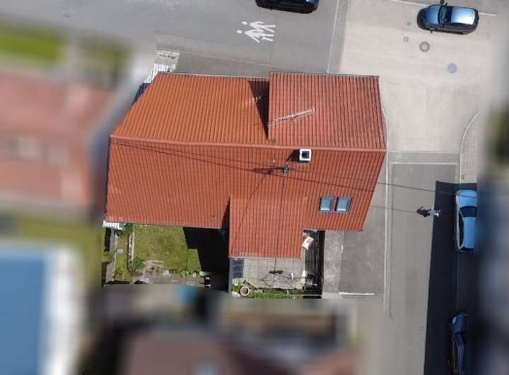 - OG: 3 Zi. ca. 50 m² Wfl., Küche m. Veranda u. WC, Esszi./ Büro, Wohn- u. Schlafzimmer