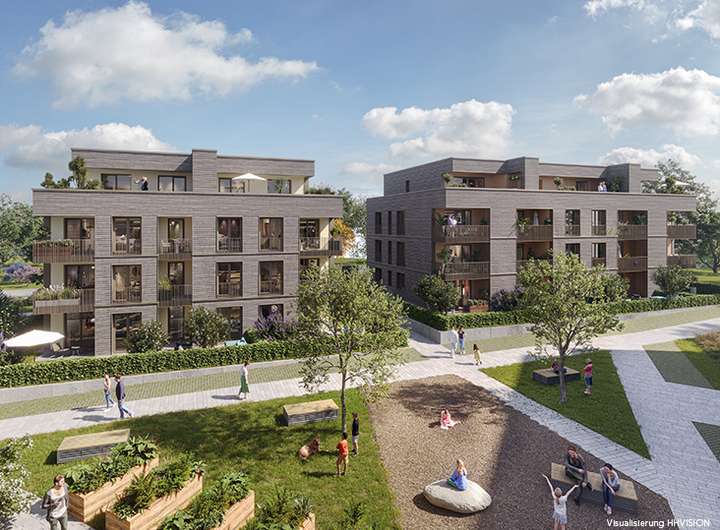 Die Realisierung des neuen Quartiers mit seinen durchmischten Wohnformen ist in mehreren Bauabschnitten geplant. Mit einem Quartiershof und einer gemeinsamen Tiefgarage entsteht ein lebendiges und dennoch einheitlich gestaltetes Ensemble, bei dem die Architektur eine Verbindung zu dem angrenzenden Landschaftsraum herstellt. Im ersten Bauabschnitt sind 26 Wohnungen in zwei Gebäuden geplant. Das offene Wohnareal bildet den neuen, Identität stiftenden Ortseingang von Schanbach. Umgeben von Feldern, Wiesen und Wald, bietet der Standort an der Krummhardter Str. / Im Fuchsbühl seinen Bewohnern eine besondere Lebensqualität. Die direkte Verbindung zur Naturlandschaft sowie der ruhige und hochwertig ausgestattete Innenhof laden zur aktiven Freizeitgestaltung, aber auch zum Entspannen und Ausatmen ein. Die Häuser befinden sich auf einer Hochfläche, wodurch sich eine attraktive Hanglage mit Weitblick ergibt. Die erhöhte Lage rückt das Remstal mit seinen Weinbergen und den angrenzenden Schurwald angenehm in den Fokus. Ein Panorama, das für Hochgefühle sorgt! Die direkte Nähe zu Esslingen am Neckar erweitert das Leben im Grünen um die praktischen Annehmlichkeiten der Großen Kreisstadt.