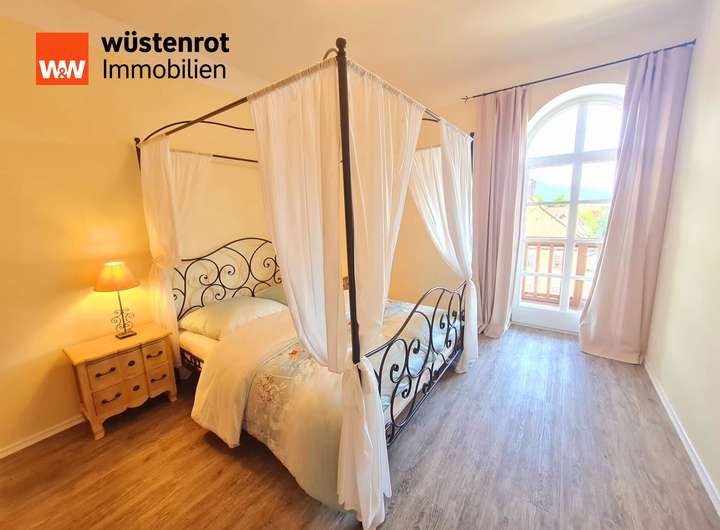 Genießen Sie die Atmosphäre des Balkons, der einen wunderbaren Rückzugsort im Freien bietet. Diese exklusive Immobilie kombiniert denkmalgeschützte Architektur mit zeitgemäßer Ausstattung, um ein einzigartiges Wohnerlebnis zu schaffen.