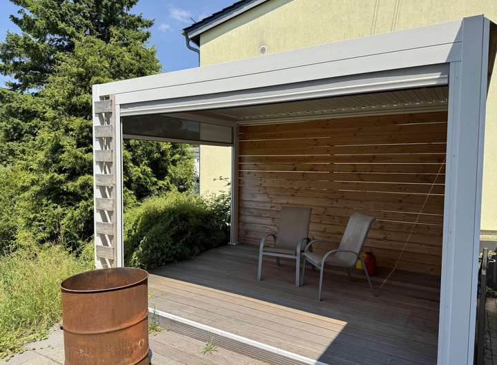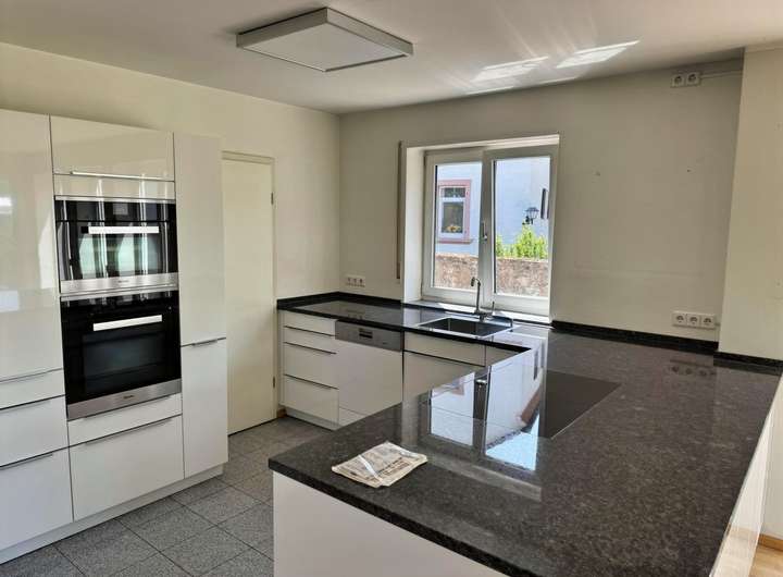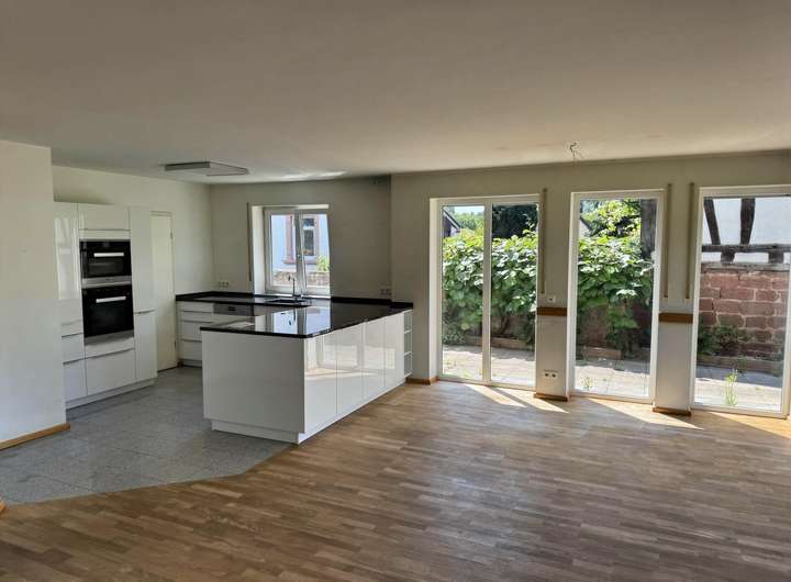 Im Erdgeschoss empfängt Sie der große und helle Eingangsbereich mit stilvoller Holztreppe zum Obergeschoss. Der äußerst großzügige Wohn-, Ess- und Kochbereich mit Kaminofen wird auch Ihnen gefallen. Dieser ist durch seine zahlreichen bodentiefen Fensterelemente äußerst hell. Ein absolutes Hihghlight ist zudem die edle und moderne Einbauküche. Diese verfügt zusätzlich über eine direkt angrenzende und sehr praktische Speisekammer. Der Wohnbereich verfügt auch über einen Ausgang zur großen umlaufenden Terrasse und damit auch zum Garten. Die große und neuwertige Pergola macht auch die Nutzung des Außenbereichs bei weniger idealem Wetter möglich.