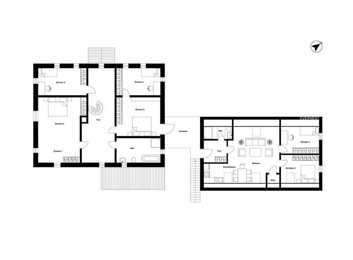 Die Immobilie eignet sich perfekt als großzügiges Familienanwesen, für Mehrgenerationenwohnen, als kreatives Refugium oder für Menschen mit handwerklichen Ambitionen. Das Haupthaus bietet 5 Zimmer und 2 Bäder – ideal für Familie, Freunde und Gäste. Ein separates Gästehaus mit 2 Wohnungen ergänzt das Raumangebot und eröffnet zusätzliche Nutzungsmöglichkeiten.