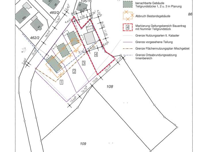( im Lageplan Flur 108/1 mit direkt angrenzendem Teil von Grünland Flur 108 ).