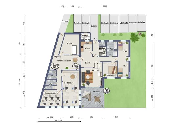 Aufenthalts-, Schulungs- und Anlieferungsräume (Erdgeschoss):