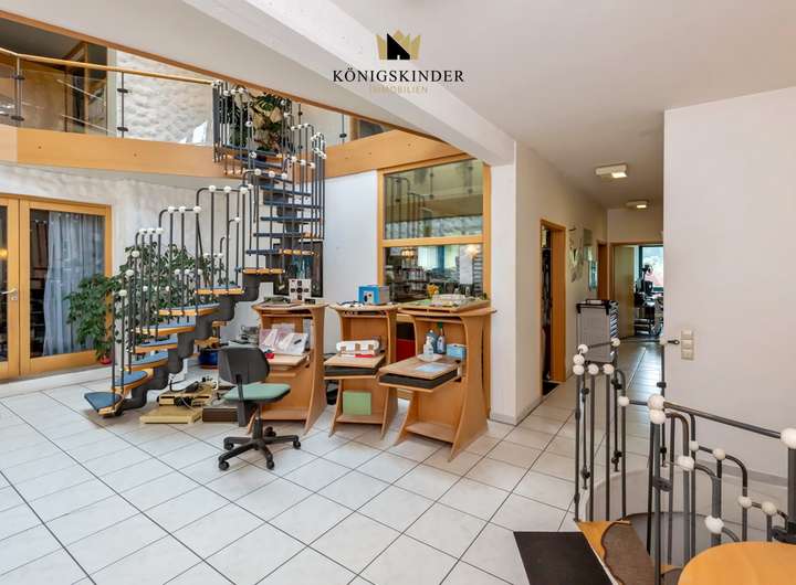 Die gesamte Nutzfläche beträgt großzügige 615,63 Quadratmeter. Das Objekt vereint Wohnkomfort mit gewerblicher Flexibilität und bietet Raum für individuelle Gestaltung – sei es für die Eigennutzung, als Mehrgenerationenhaus oder renditestarke Kapitalanlage.