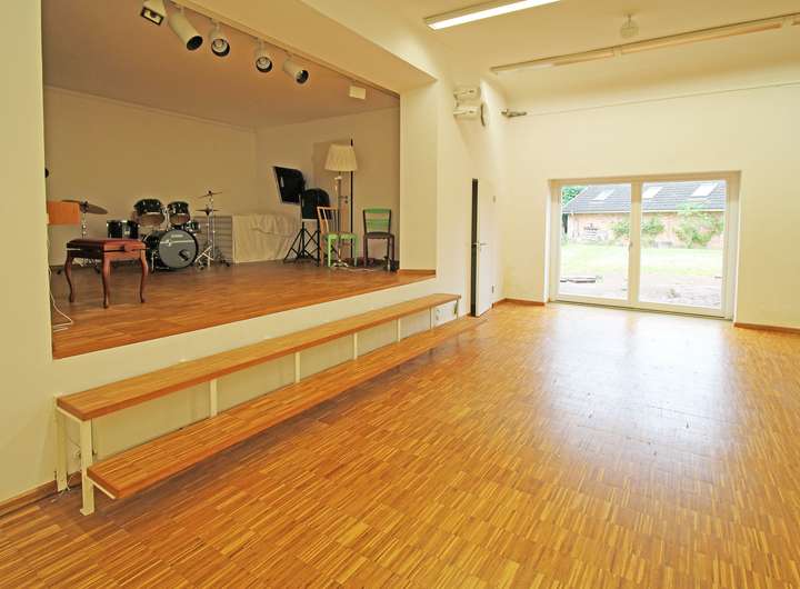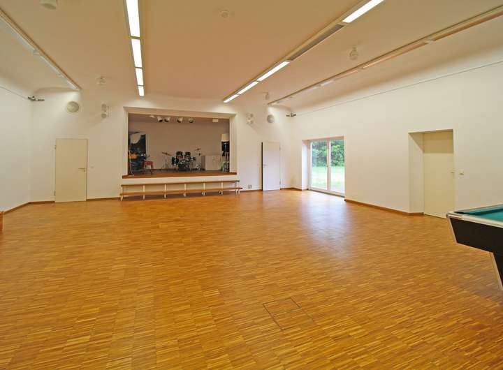 -großer Saal mit Bühne im Erdgeschoss