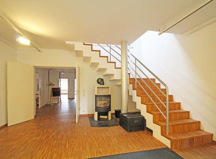 -Pelletofen im Wohnbereich im Obergeschoss