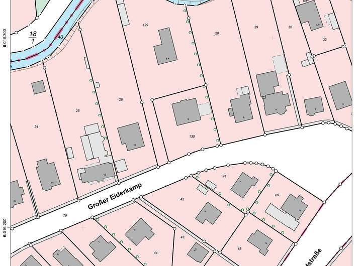 Für das Grundstück gilt ein einfacher Bebauungsplan. Das bedeutet: Es bestehen keine festen Baugrenzen, jedoch sind die gesetzlichen Abstandsflächen einzuhalten. Die Grundflächenzahl (GRZ) beträgt 0,2. Für das Wohnhaus steht eine bebaubare Fläche von bis zu 200 m² zur Verfügung. Terrassen, Carports und Pflasterflächen bleiben hierbei unberücksichtigt.