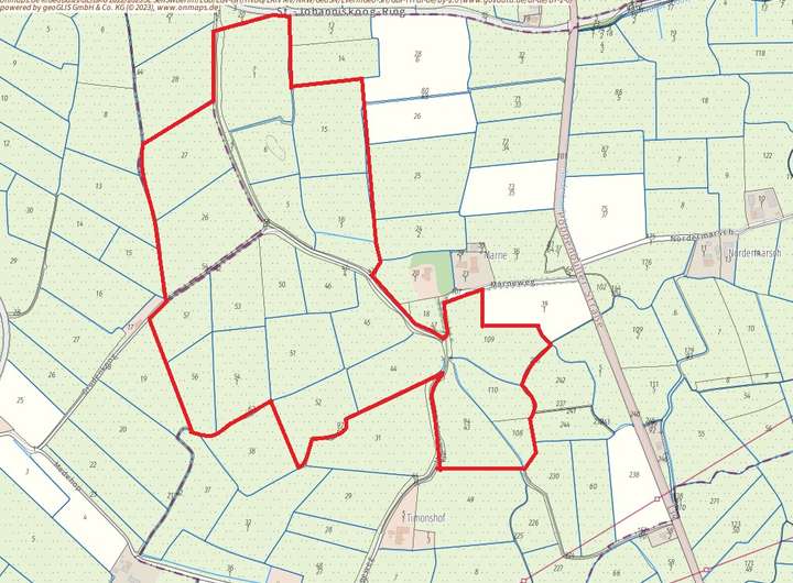 Selten kommt auf Eiderstedt eine so große Fläche zusammenhängender Grünflächen auf den Markt. Insgesamt 24 Grundstücke mit insgesamt 58,63 Hektar Fläche bilden das Angebot in bester Außenlage zwischen Tating, Garding und Poppenbüll.