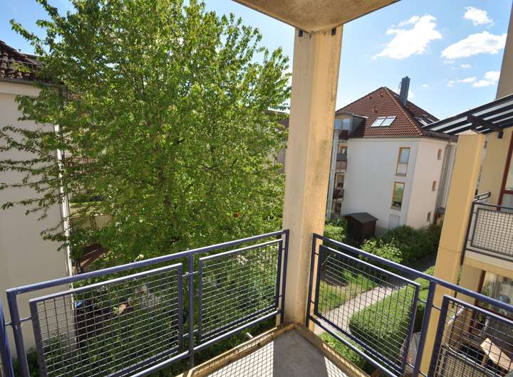 Zu jeder Wohnung gehört ein separater Kellerraum sowie ein Garagenstellplatz. In diesem Fall handelt es sich um einen beliebten Einzelstellplatz in der oberen Garage. Der Balkon ist Richtung Süden.
