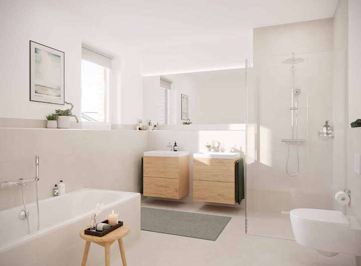 • Individuell steuerbare Fußbodenheizung in jedem Raum, der größer als 6 m² ist