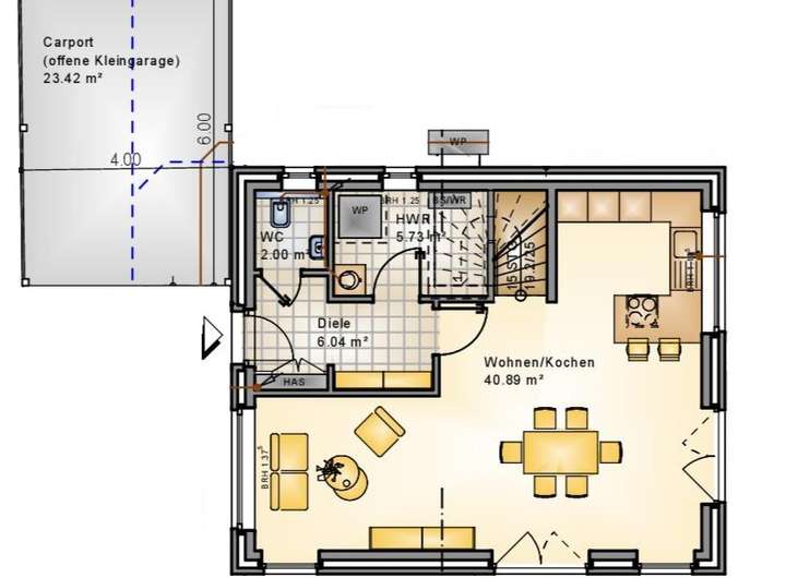 Nicht im Angebotspreis enthalten sind die Nebenkosten (Hausanschlüsse, Außenanlagen etc.)
