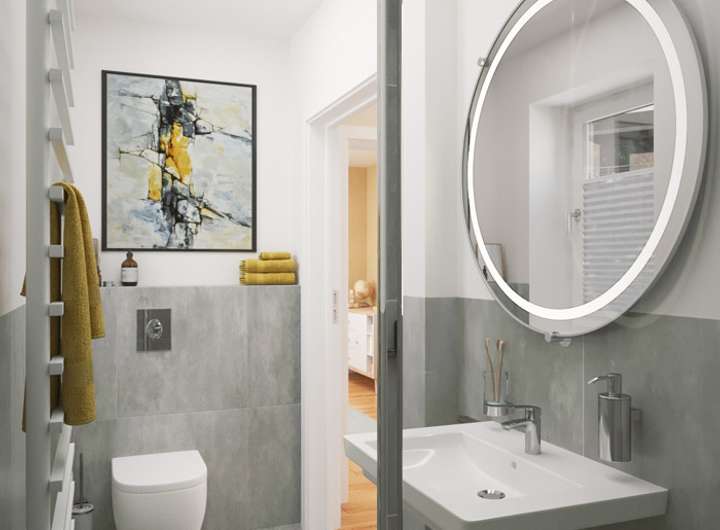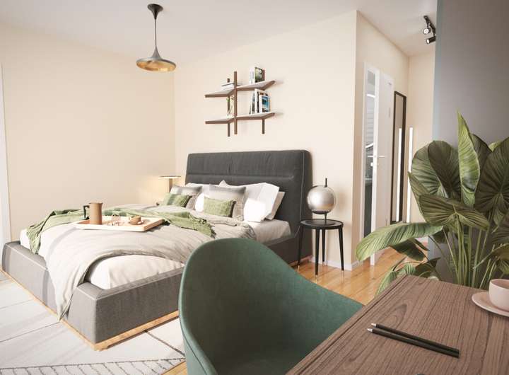 Alle Visualisierungen, Illustrationen und Grundrisse auf den Bildern sind unverbindlich und stellen keine detailgetreue Abbildung der Ausführung dar. Abweichungen der Ausführung sind möglich! Einbauten und Möbel gehören nicht zur Ausstattung der einzelnen Wohnungen. Für die Ausstattung ist die Baubeschreibung maßgebend. Renderings, Visualisierungen und Grundrisse beruhen auf einen Planstand vom Oktober 2022. Im Rahmen der Detail- und Ausführungsplanung können aufgrund behördlicher Auflagen und bautechnischer Erfordernisse Änderungen dieser Planung möglich sein. Es wird für die Vollständigkeit und Richtigkeit keine Haftung übernommen.
