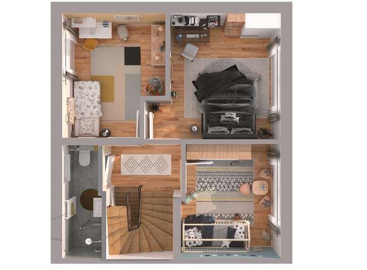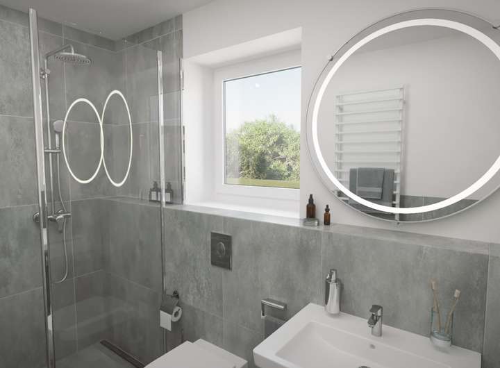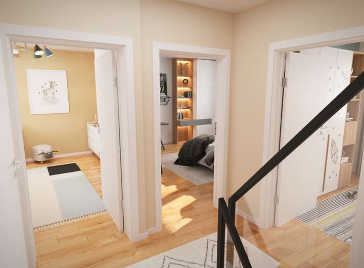 Im Obergeschoss erwarten Sie drei gut geschnittene Schlafzimmer sowie ein stilvolles Tageslichtbad mit moderner Dusche – ideal für Kinder, Gäste oder als Homeoffice.