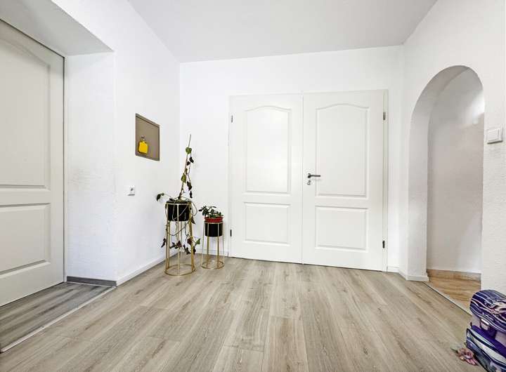 Die Wohnfläche von ca. 108 m² erstreckt sich über zwei Ebenen und bietet eine durchdachte Raumaufteilung, die sowohl funktionale als auch ästhetische Ansprüche erfüllt. Helle, freundlich gestaltete Räume schaffen eine einladende Wohnatmosphäre, während der gepflegte Innenausbau, welcher im Jahr 2023 umfassend modernisiert wurde, den stilvollen Charakter des Hauses unterstreicht. Ergänzt wird die Wohnfläche durch eine zusätzliche Nutz- und Nebenfläche von ca. 54 m², die vielfältige Nutzungsmöglichkeiten bietet – sei es als Hauswirtschaftsbereich, Lagerfläche oder Hobbyraum.