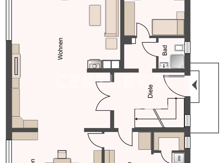 Die beigefügten Bilder zeigen teilweise mit KI generierte Einrichtungsbeispiele, um Ihnen eine erste Vorstellung von Einrichtungsmöglichkeiten zu geben.