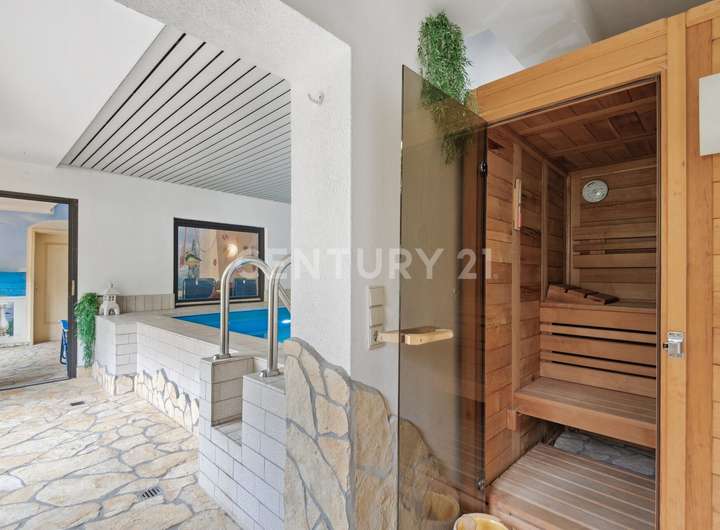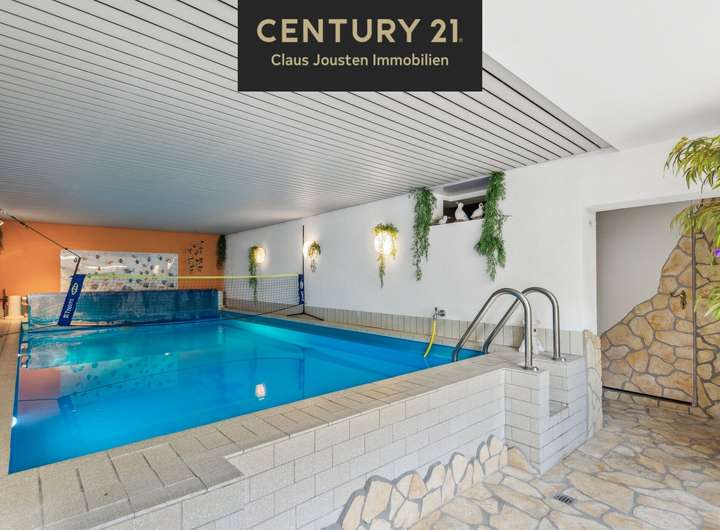 Das absolute Highlight ist der Indoor-Pool mit Gegenstrom Anlage in den Maßen 3,5m x 7m, der Ihnen ermöglicht, das ganze Jahr über zu schwimmen und sich zu entspannen. Die Sauna mit Dusche und der Kaminraum bieten zusätzliche Möglichkeiten, sich zu erholen und zu entspannen