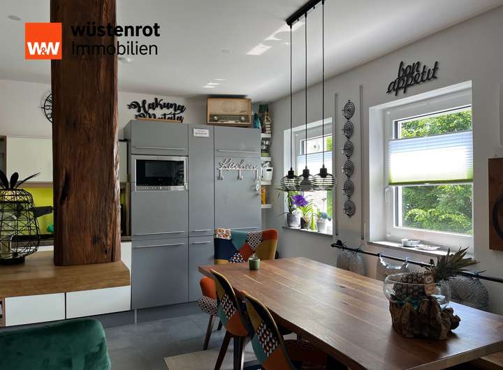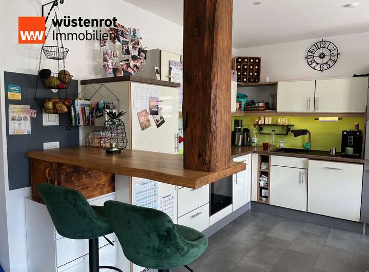 Willkommen in einem barrierefreien und seniorengerechten Zuhause, das höchsten Wohnkomfort bietet. Die Immobilie besticht durch eine moderne offene Küche, die nahtlos in den Wohnbereich übergeht und einladend wirkt.