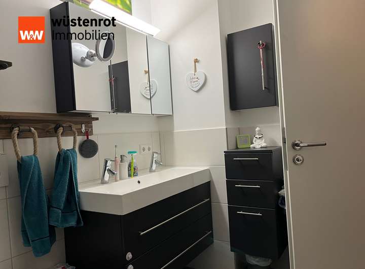 Die Wohnung verfügt über 3 geräumige Zimmer (zzt. Schlafzimmer und zwei Kinderzimmer) und ein modern gestaltetes Badezimmer. Das vierte Zimmer wird zzt. als Ankleidezimmer genutzt. Es besteht die Möglichkeit, die Trockenbauwand zu entfernen und das Schlafzimmer zu vergrößern. Ein separates Gäste WC befindet sich in der Diele der Wohnung.