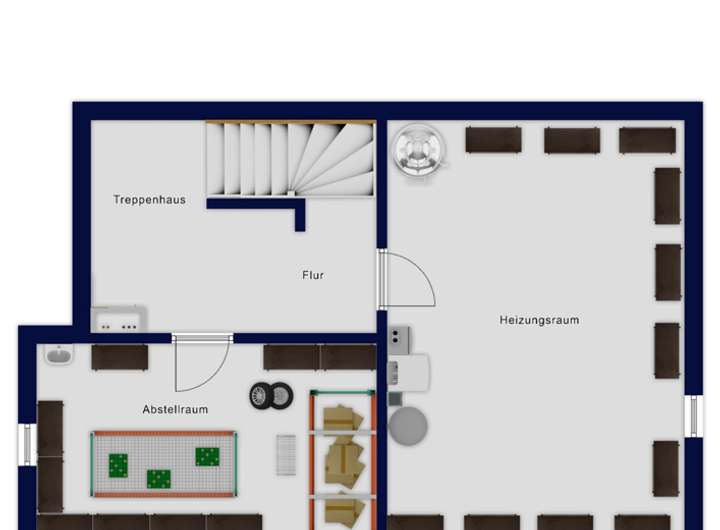 Im Untergeschoss stehen rund 53 m² Nutzfläche zur Verfügung mit Platz für Vorräte, eine Waschküche und den Heizungsraum. Die klare Gliederung unterstützt den Alltag mit praktischem Nutzen.