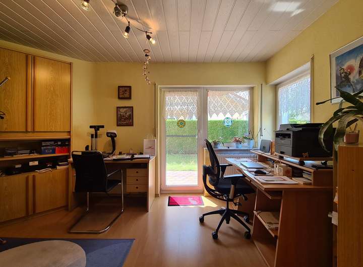 - Laminatböden, Buche-Dekor, in Arbeitszimmer und Schlafbereichen