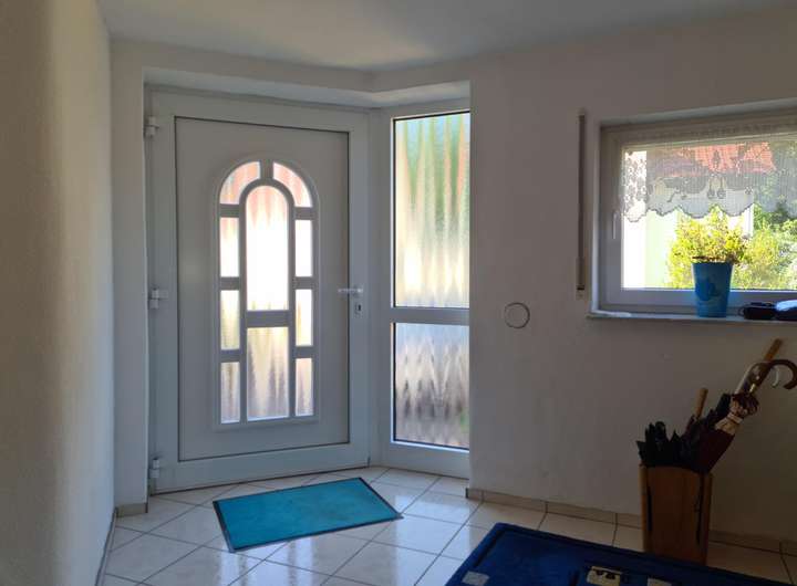 - Innenwände: Rollputz im Treppenhaus, Strukturtapete in Wohn- und Schlafbereichen