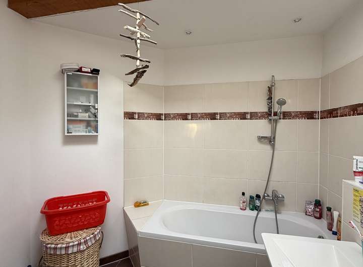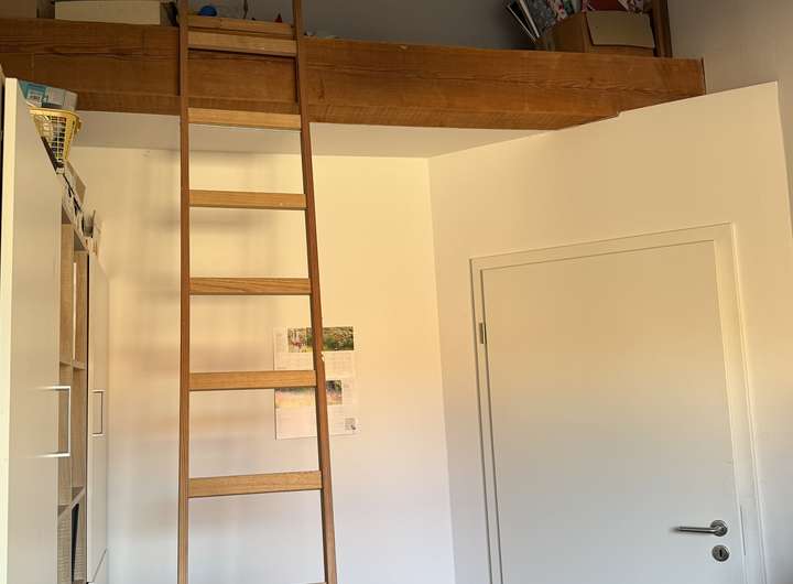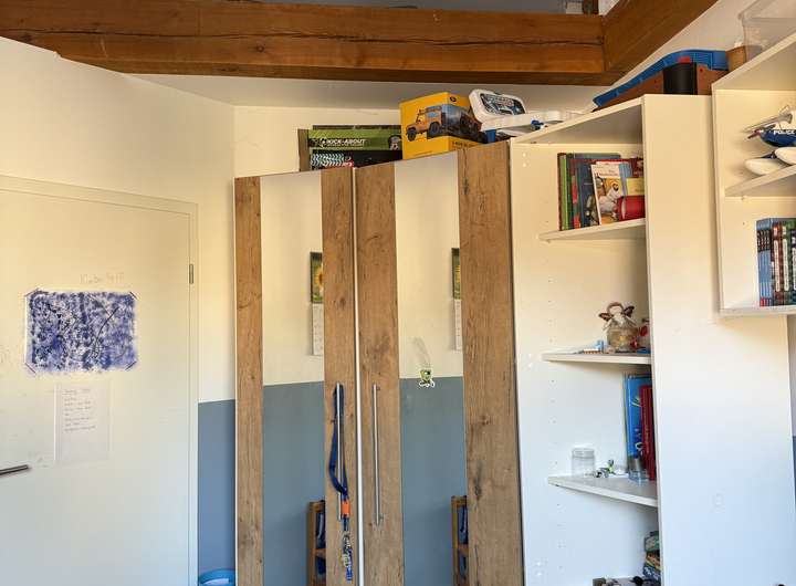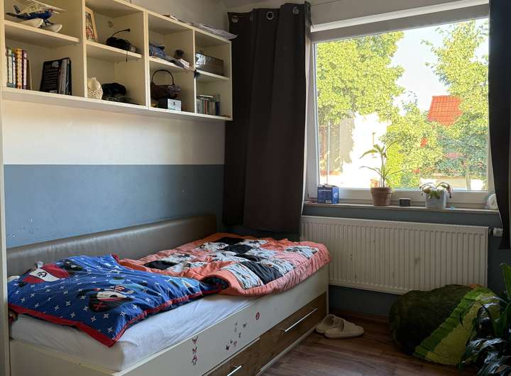 Neben dem im Rahmen der Kernsanierung ebenfalls neu gestalteten Badezimmer bietet das Obergeschoss Platz für ein Schlafzimmer zur Gartenseite sowie zwei weitere Wohnräume. Diese könnten ggf. mit wenig Umbau-Aufwand mit einem Hochbett in der Nische oberhalb der Tür erweitert werden.