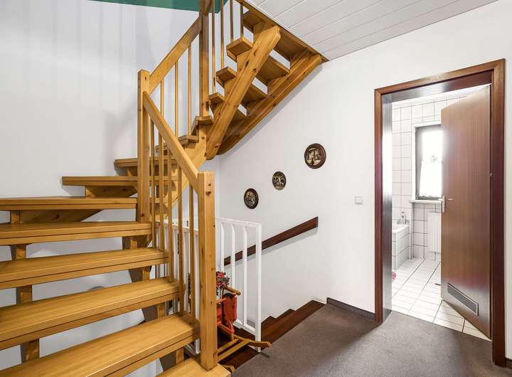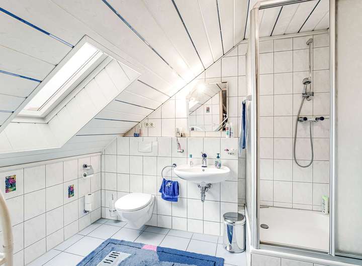 Wohnkomfort: 5 Zimmer, 2 Bäder + Gäste-WC / ausgebautes Dachgeschoss, voll unterkellert mit Hobbyraum, überall Fußbodenheizung (außer 2. OG)