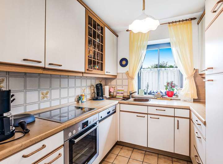 Die Einbauküche ist funktional eingerichtet und Bestandteil des Angebots. Ein Einzelstellplatz in der Tiefgarage gehört zum Haus und muss mit erworben werden.