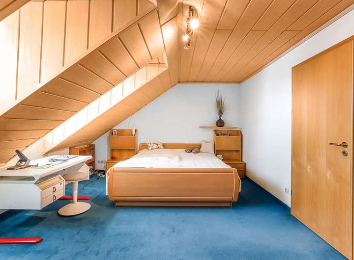 Hier hat jeder seinen Platz: Eltern, Kinder – und auch das Homeoffice findet im Hobbyraum oder im Dachgeschoss seinen perfekten Rückzugsort. Der großzügige, umlaufende Garten mit Terrasse wird im Sommer zum zweiten Wohnzimmer. Und auf dem großen Balkon im Obergeschoss genießen Sie die Ruhe des Wohnviertels und die Abendsonne über den Baumwipfeln.