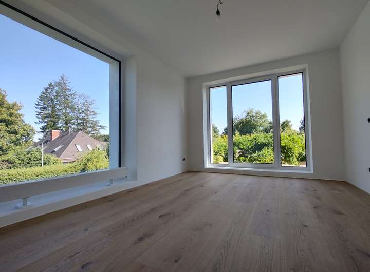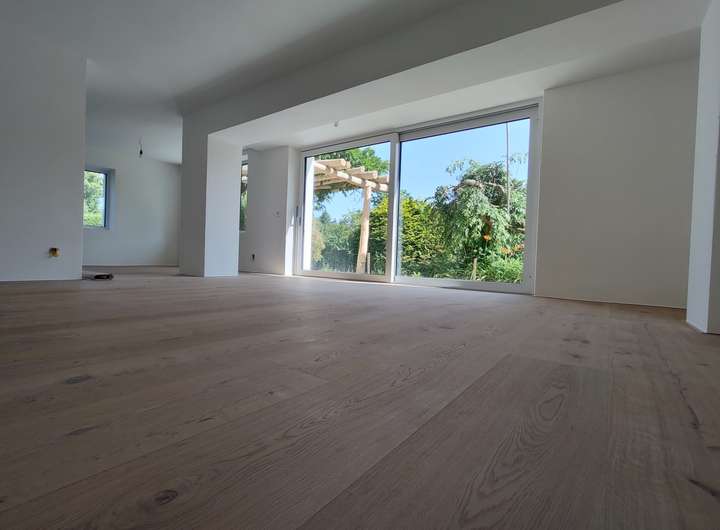Eichenparkett, Fußbodenheizung im EG, Erstbezug nach Komplettsanierung inkl. energetischer Sanierung, Balkon, große Südterrasse mit Pergola, alter Baumbestand im Garten. Küche wird individuell nach den Wünschen des Mieters neu eingebaut.