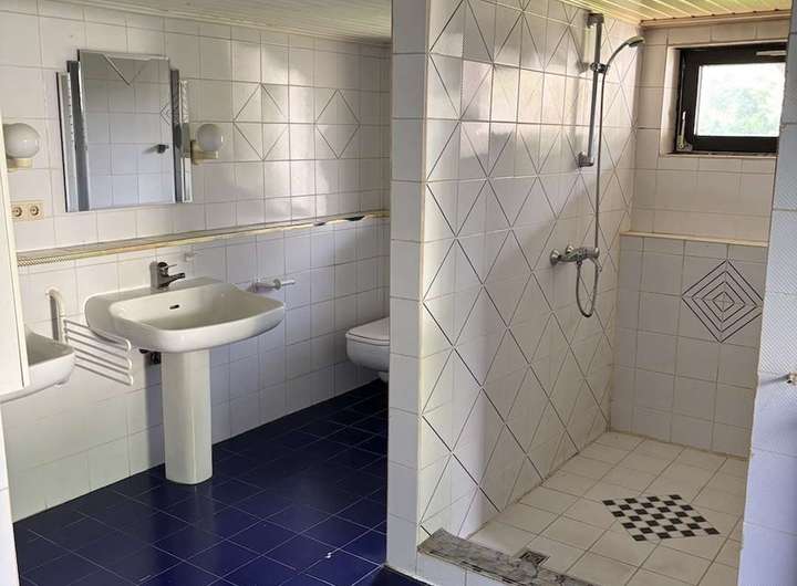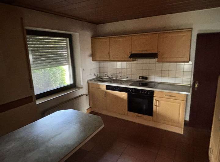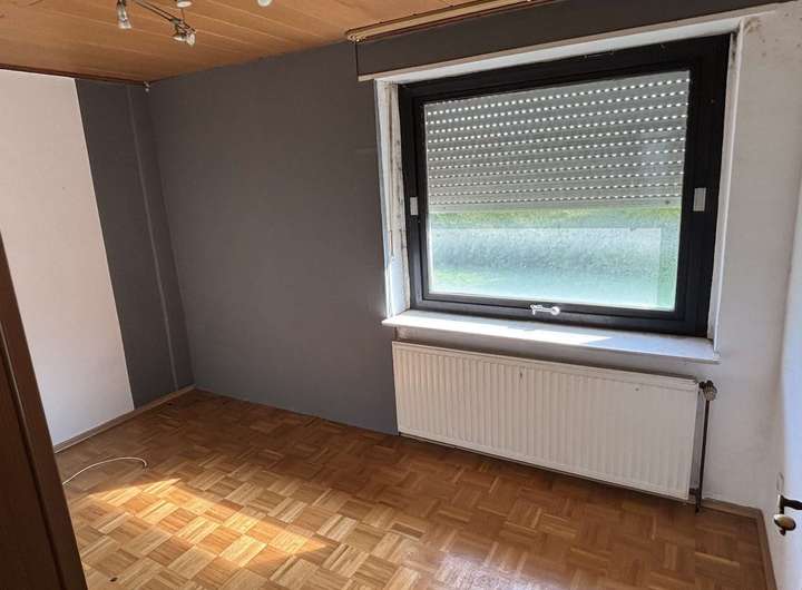 Das Bauernhaus wurde in der Vergangenheit zu einem Einfamilienhaus umgebaut und ist teilunterkellert. Es verfügt über zwei Fertiggaragen. Die Substanz des Gebäudes zeigt Potenzial, erfordert jedoch umfangreiche Renovierungs- und Modernisierungsarbeiten – insbesondere im Hinblick auf Elektrik, Fenster, Sanitäranlagen und energetische Standards.