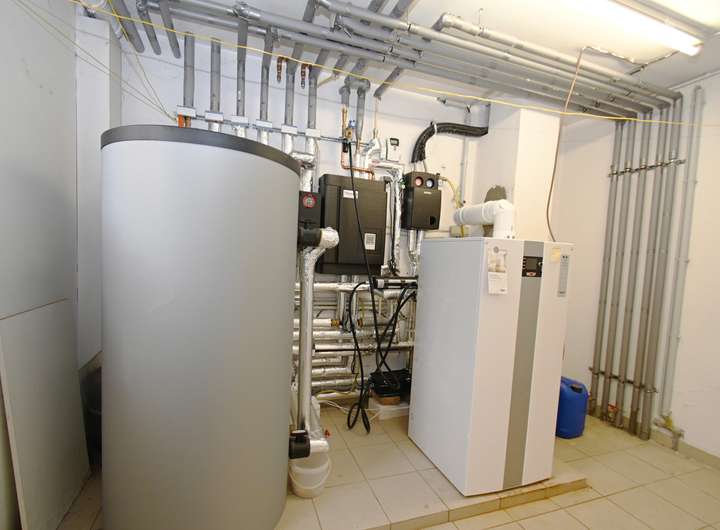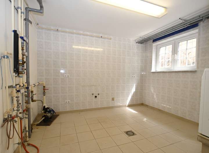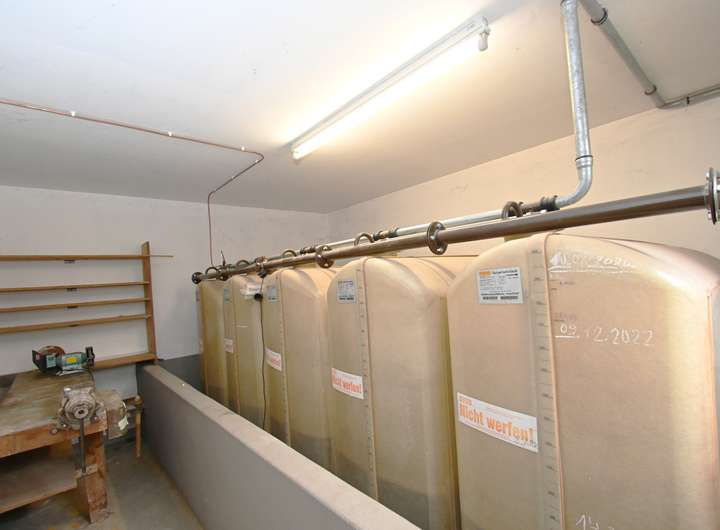 Die Kombination aus Zentralheizung und Solarthermie versorgt das Haus auf effiziente Weise mit warmem Wasser und trägt so zu niedrigen Energiekosten bei. Eine zusätzliche Regenwasserzisterne mit einem Fassungsvermögen von 7.000 Litern zeigt das umweltbewusste Konzept der Immobilie.