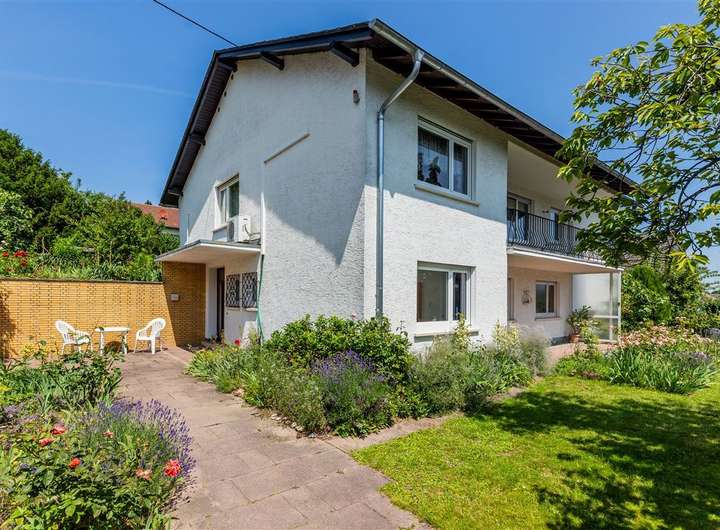 Dieses gepflegte und großzügige Zweifamilienhaus in sonniger Hanglage bietet zahlreiche Nutzungsmöglichkeiten – sei es als Mehrgenerationenhaus, zur Teilvermietung, für das Wohnen und Arbeiten unter einem Dach oder als großzügiges Zuhause für die ganze Familie. Auf einem über 1.300 m² großen Grundstück erstreckt sich eine Gesamtwohnfläche von rund 200 m², verteilt auf zwei abgeschlossene Wohneinheiten. Die durchdachte Bauweise passt sich optimal der Hanglage an: Während der vordere Bereich ebenerdig erreichbar ist, öffnet sich das Haus zum hinteren Grundstück hin auf Gartenebene.