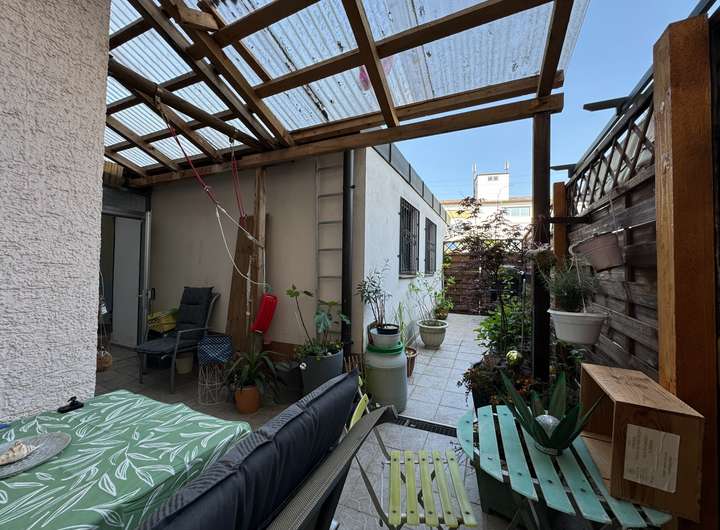 Direkt vom Treppenhaus aus gelangen Sie in den terrassenartig angelegten Hinterhof – ein perfekter Ort zum Entspannen, Grillen oder geselligen Beisammensein mit Freunden.