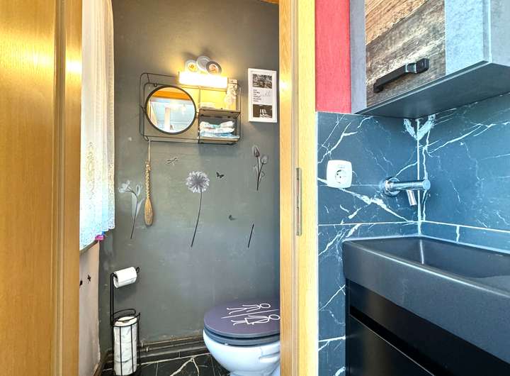 Dieses einladende Mehrfamilienhaus überzeugt durch eine durchdachte Raumaufteilung, helle Wohnbereiche und zahlreiche liebevolle Details. Schon beim Betreten des Hauses fällt das wohnliche Treppenhaus ins Auge – mit zeitlosen Granitfliesen und einem stilvollen Holzgeländer bietet es einen gepflegten ersten Eindruck.
