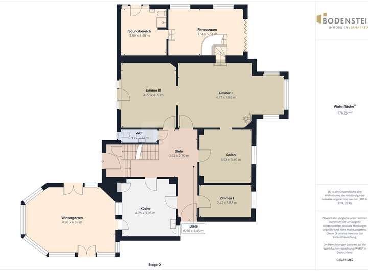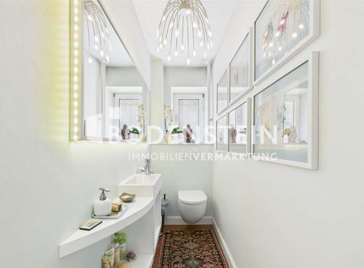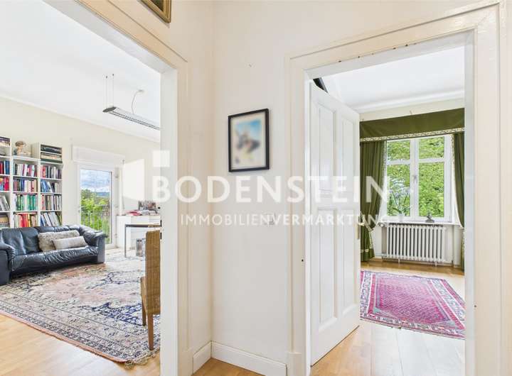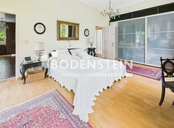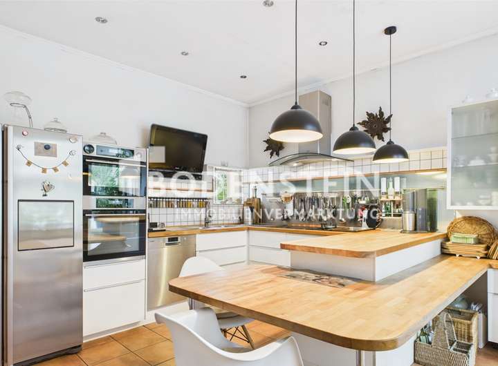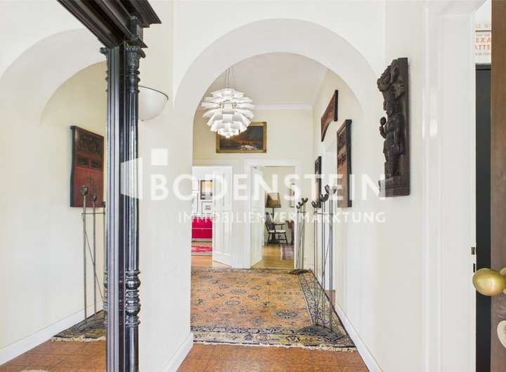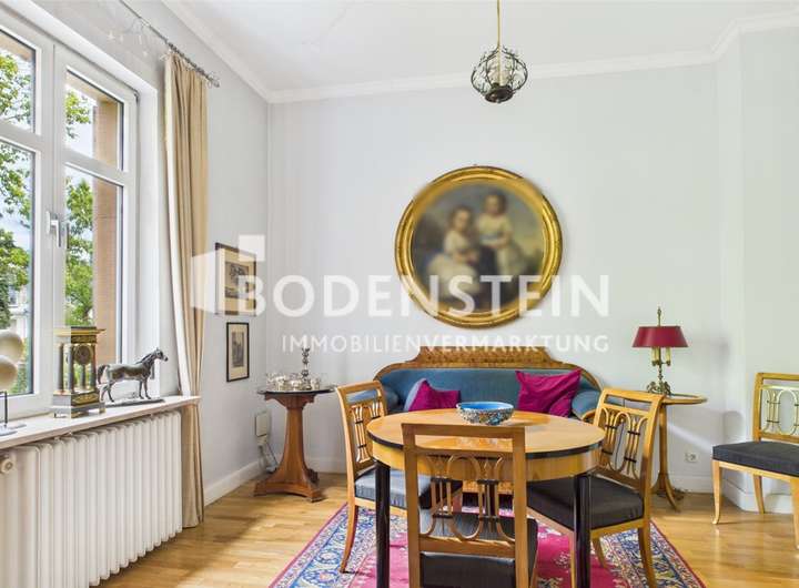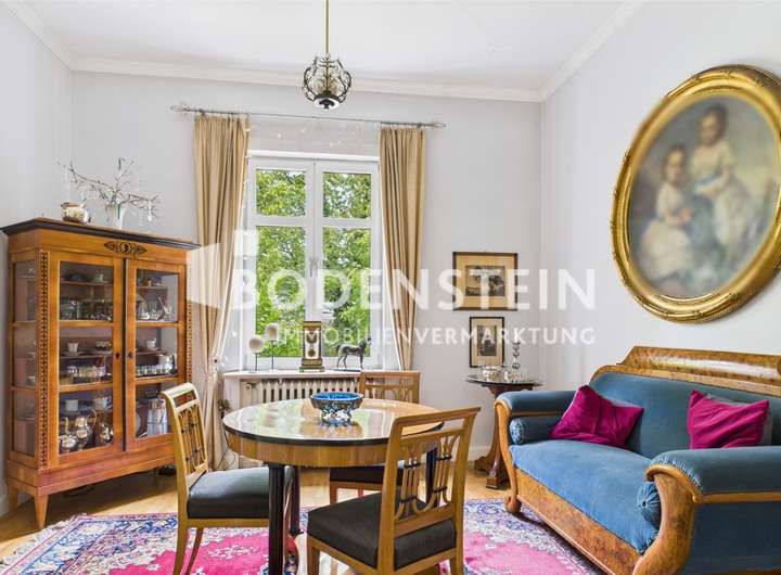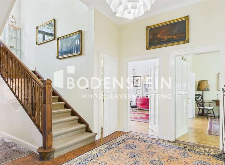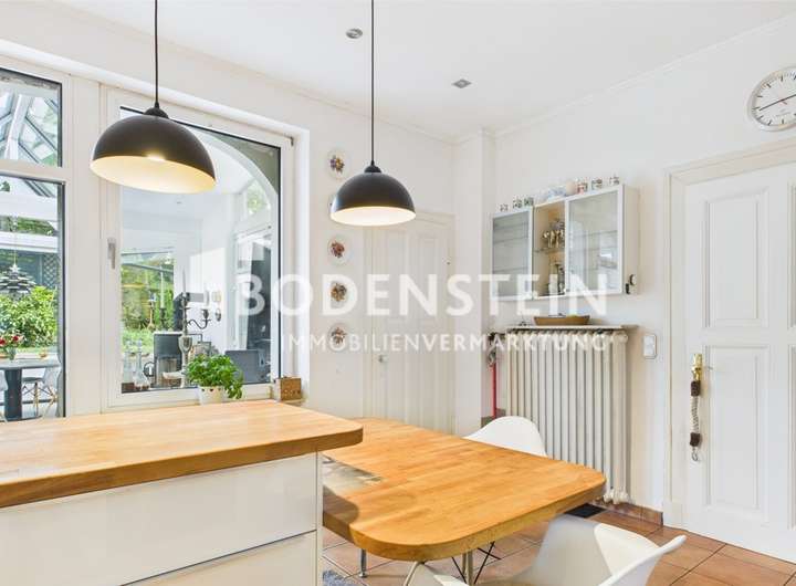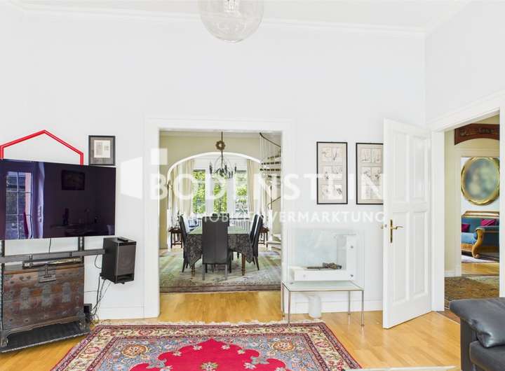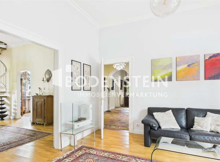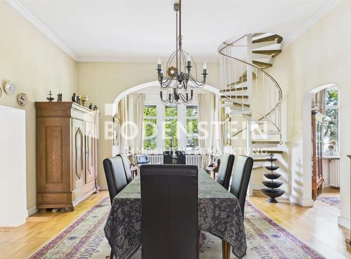 Auf rund 400 m² Wohnfläche, verteilt auf drei Etagen, erwarten Sie großzügige Raumdimensionen, klassische Stilelemente und lichtdurchflutete Wohnbereiche. Der repräsentative Eingangsbereich führt in die elegante Beletage mit zwei weitläufigen Wohnzimmern, einem separaten Salon sowie einer hochwertigen und großzügigen Einbauküche. Der angeschlossene Wintergarten mit Blick ins Grüne ist ein Highlight zu jeder Jahreszeit und lädt zum Verweilen ein.