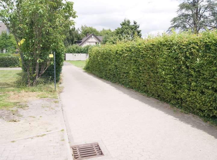 Das Grundstück liegt am Ende einer Sackgasse und wird über einen Privatweg erreicht.