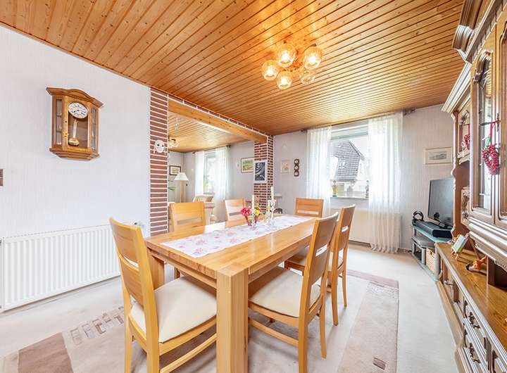 Das Haupthaus verfügt über 3,5 Zimmer und verteilt sich auf ca. 122 m² Wohnfläche. Im angrenzenden Anbau aus 1951 befinden sich 2 ineinander übergehende Zimmer zuzüglich Küche und Bad und Gäste-WC mit ca. 55 m². Die Heizung erfolgt über zwei effiziente Gas-Zentralheizungen aus 2001.
