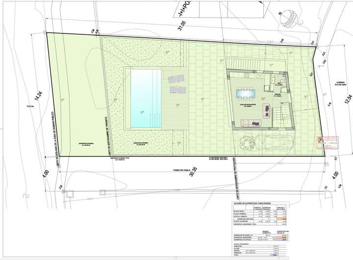 Die geplante Residenz erstreckt sich über drei Etagen plus Keller und bietet eine bebaute Gesamtfläche von 183 m². Die 112 m² große Wohnfläche ist durchdacht gestaltet, um Komfort und Funktionalität zu maximieren. Der 50 m² große Keller bietet vielseitige Möglichkeiten, darunter ein privates Fitnessstudio und einen Heimkinoraum. Ein 21 m² großer Pool ergänzt den Außenbereich und bietet den perfekten Ort, um das mediterrane Klima zu genießen. Hochwertige Materialien und Oberflächen sowie Fußbodenheizung und Klimaanlage sorgen für ganzjährigen Komfort.