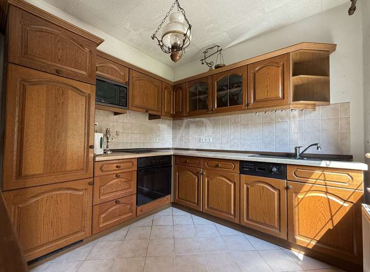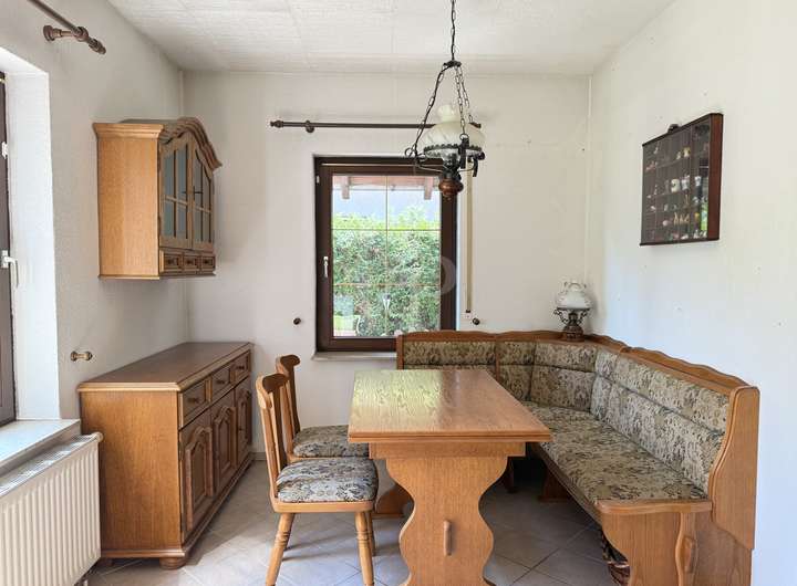 Zur Linken des Wohnzimmers befindet sich die Küche – kompakt, gut nutzbar und mit klarer Trennung vom Wohnbereich. Sie bietet die perfekte Grundlage für individuelle Gestaltungsideen und eine moderne Neugestaltung. Sie können das Grundstück, aus dem Wohn-Essbereich betreten.