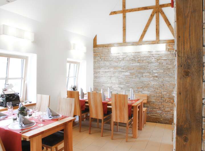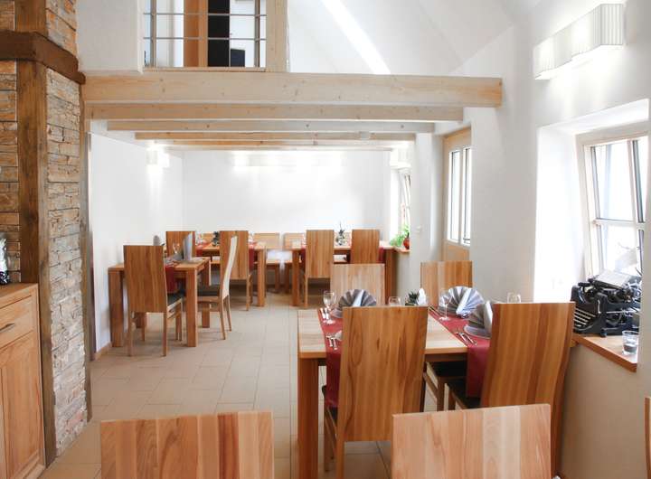 ++ Vielseitig nutzbares Nebengebäude: Der aktuell als Gastraum gestaltete Bereich lässt sich ohne großen Aufwand als Büro, Praxis, Atelier oder exklusive Einliegerwohnung ausbauen. Getrennte Sanitäranlagen und eigene Küche bereits vorhanden.