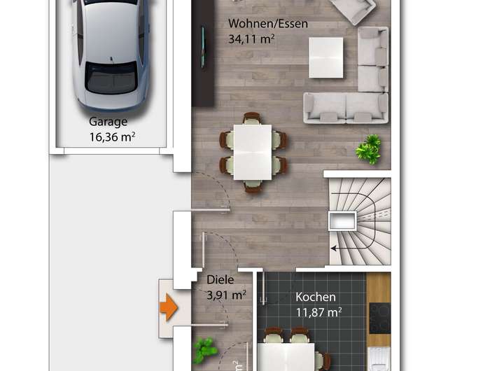 Das Erdgeschoss mit offener alternativ geschlossener