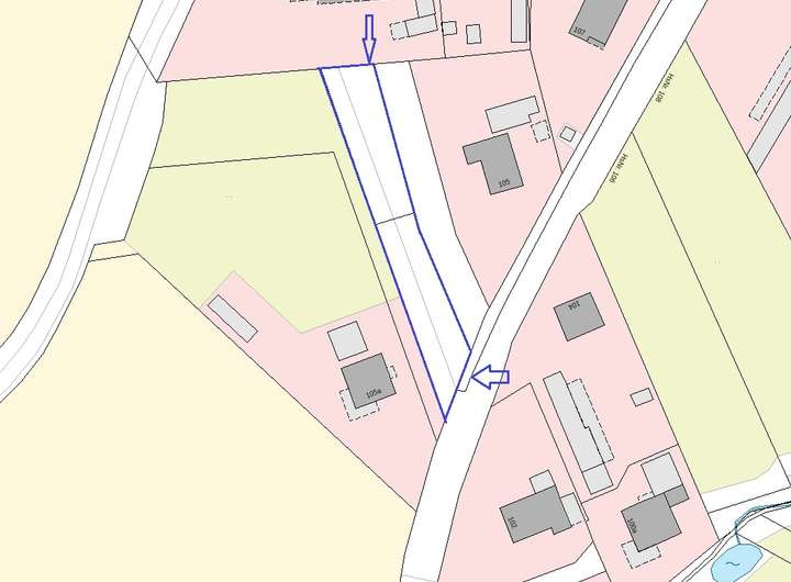 Alle Anschlüsse liegen an der Hauptstraße entlang des Grundstücks, jedoch wurden noch keine Leitungen ins Grundstück selbst verlegt, die bereits vorhandene geschotterte Zufahrt reicht bis zum hinteren Grundstück. Es besteht kein Wegerecht oder sonstige Drittrechte.