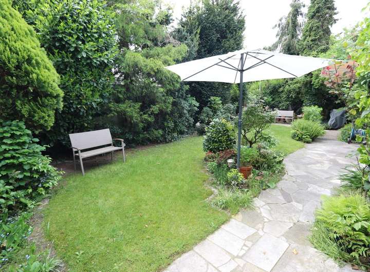 Der Bungalow verfügt über vier einladende Zimmer, darunter ein offenes Wohnzimmer mit Essbereich und Kamin, eine durchdachte Küche, drei gemütliche Schlafzimmer sowie ein Badezimmer mit Badewanne und Dusche. Ein zusätzliches Gäste-WC und ein praktischer Vorratsraum ergänzen das Raumangebot im Erdgeschoss. Die großzügige Terrasse und der uneinsehbare Garten laden zu entspannenden Stunden im Freien ein, während die ruhige Lage ein harmonisches Wohngefühl bietet.